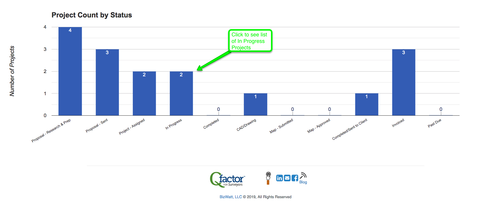 Qfactor provides a number of ways to manage by status including: Status Chart, Proposals/Projects Views, and Search All.